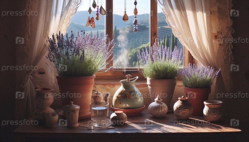 Интерьер в стиле бохо, стеклянные террариумы с воздушными растениями Tillandsia и увлажнителем, Ai generated image