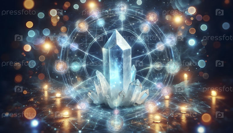 Кварцевая кристаллическая сетка, наложенная на точки чакры, Ai created image