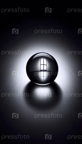 Совершенно сферическая капля воды на черной анодированной металлической поверхности, отражающая искаженную раму окна, Ai создала изображение
