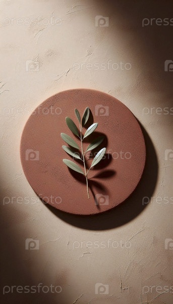 Круг оливковой ветви на терракотовой глине, Ai generated image