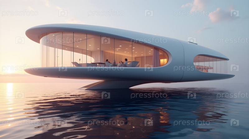 Дом плавает над водой, изображение создано с помощью ИИ