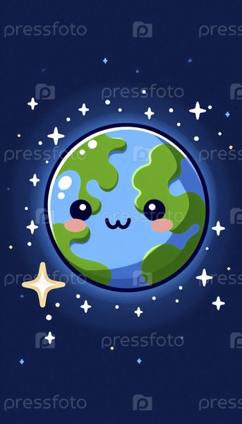 Милая планета Земля с лицом, Ai создала изображение