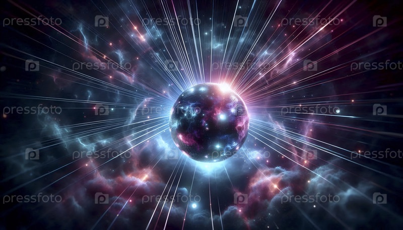 Сцена в ночном клубе с одним гигантским дискотечным шаром, отражающим красочные лазерные лучи во всех направлениях, Ai generated image
