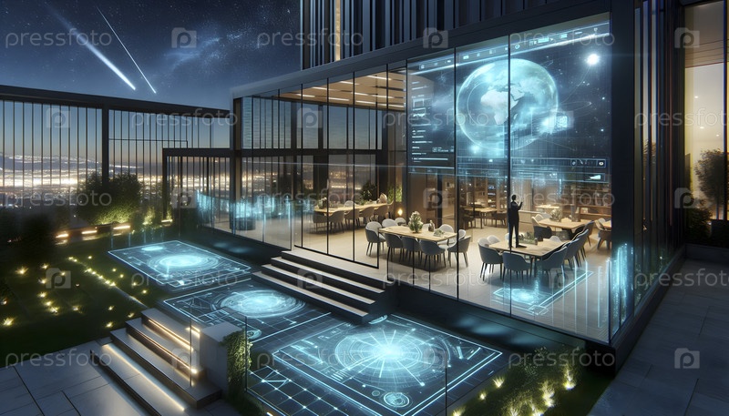 Терраса на крыше с умными стеклянными перилами, Ai created image