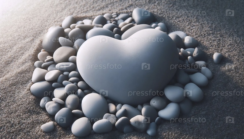 Камень в форме сердца на ложе речных камней, Ай создал изображение
