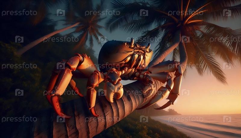 Кокосовый краб на пляже, Ai generated image