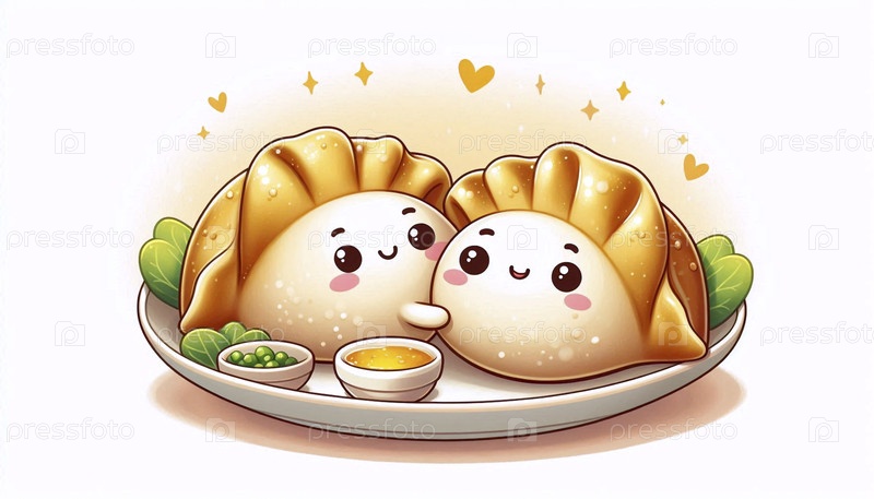 Забавная иллюстрация кавайев, обнимающих блины, Ai generated image