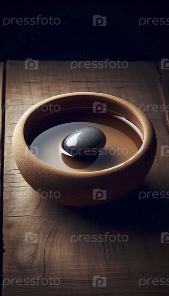 Гладкий камень в маленькой глиняной чашке с водой, Ai generated image