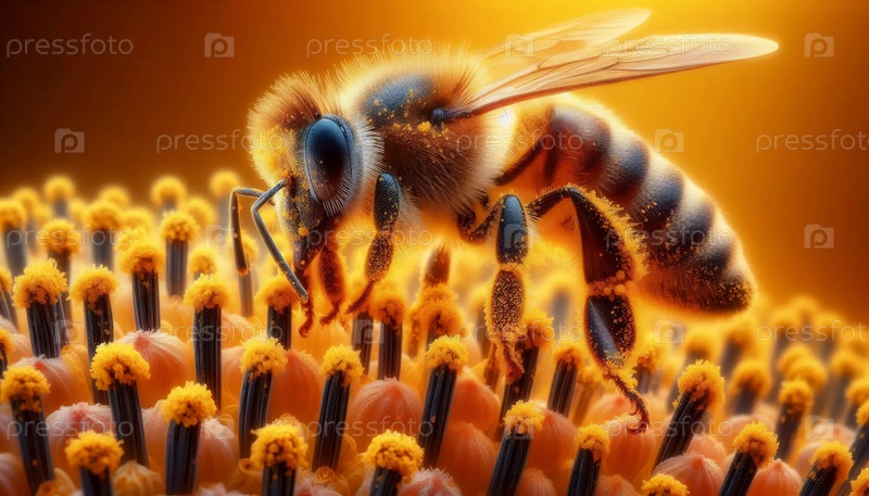 Пчелиный опыляющий макро, Ai generated image