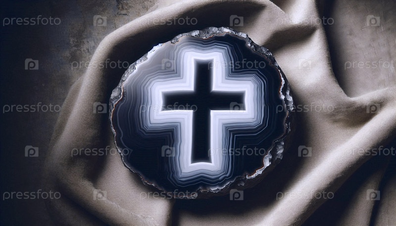 Черный кусок агаты с белым естественным крестообразованием, Ai generated image