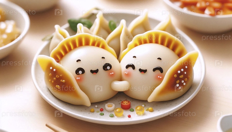 Забавная иллюстрация кавайев, обнимающих блины, Ai generated image