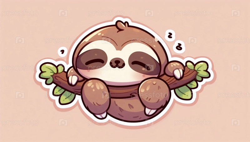 Сонный ленивец, висящий на ветке, Ai generated image