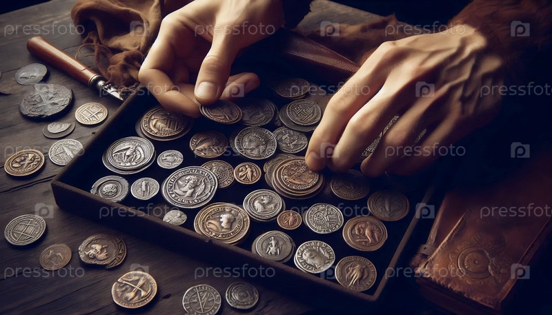 Экран коллекции античных монет, Ai generated image