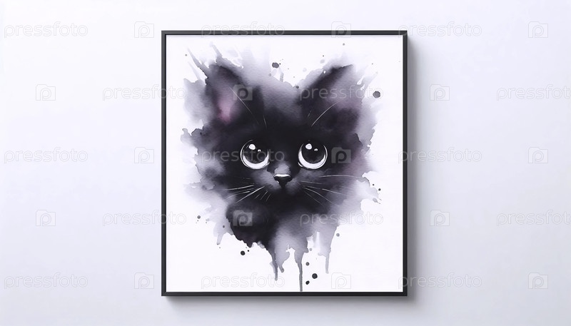 Минимализм Красивый черный кошачий принт, Ai generated image A