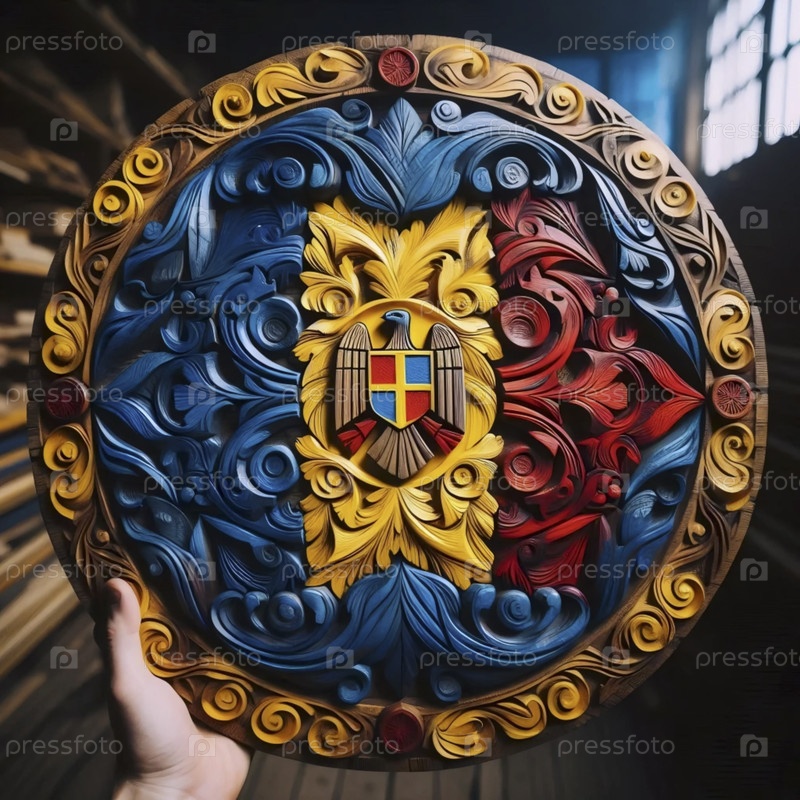 Румынский флаг в народной деревянной резьбе, Ai generated image A