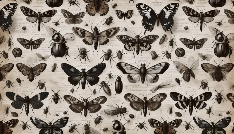 A botanical pattern Butterflies Beetles Vintage Insects, Ai generated image Ботанический шаблон Бабочки жуки Винтажные насекомые, Ай создал изображение