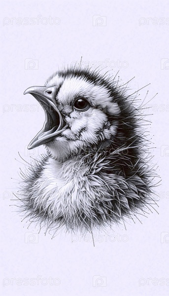 A Chirping Chick чернила рисования художественная печать, Ai generated image
