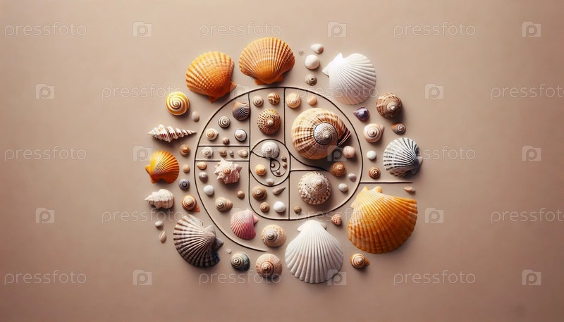 The Fibonacci в коллекции морских раковин, Ai generated image