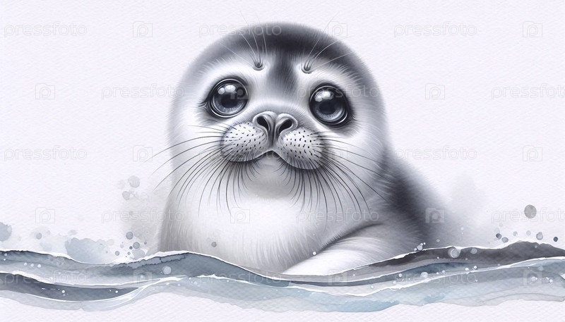 Cute Seal Pup акварельный арт-принт, Ai A generated image