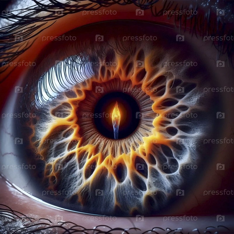 Экстремальное макро-отражание пламени в зрачку, Ai создал изображение