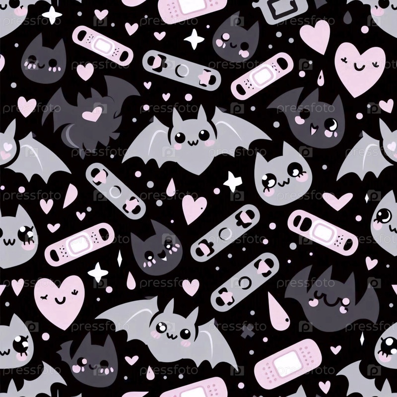 Готический шаблон кавайи из милых летучих мышей и крестов, Ai generated image