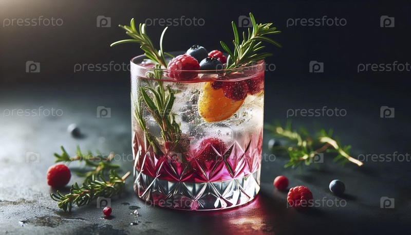 Сложный безалкогольный коктейль в кристаллическом стакане, Ai generated image
