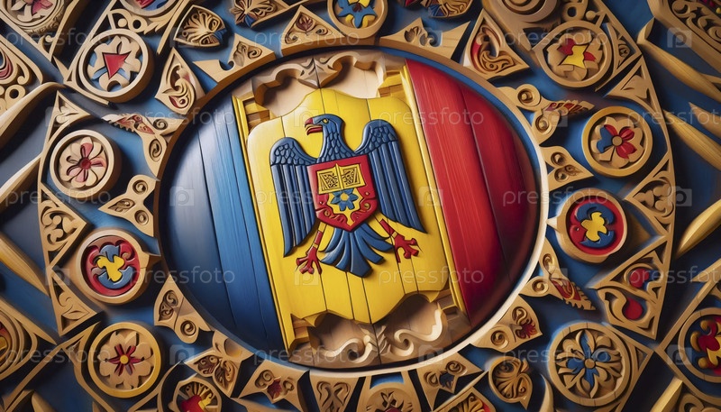 Румынский флаг в народной деревянной резьбе, Ai generated image A