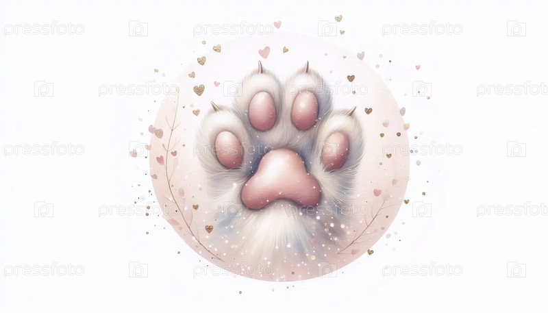 Милый акварель кошачьих лап с сердцами, Ai generated image