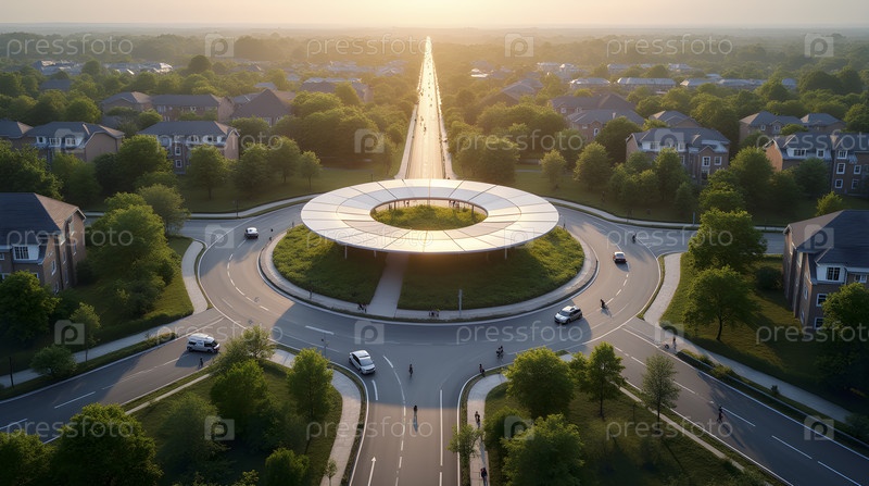 Вид с воздуха круглого умного района, изображение, созданное искусственным интеллектом