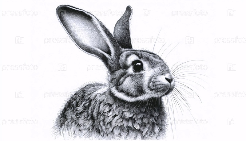 Bunny ink drawing art print, Ai generated image A Аи создал изображение с чернилами кроликов