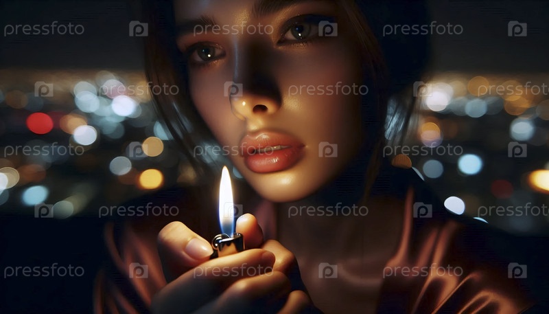 Близкий план пламени, освещающего ее лицо, Ай создала изображение