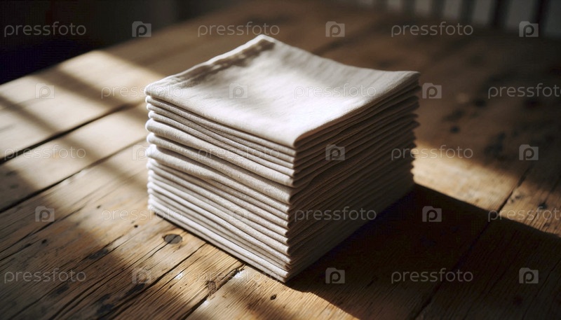 Куча макетов сырой льняной салфетки на изношенном деревянном столе, Ai generated image