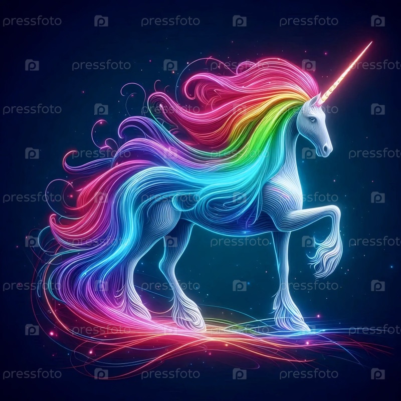 Единорог в неоновых цветах, Ai generated image