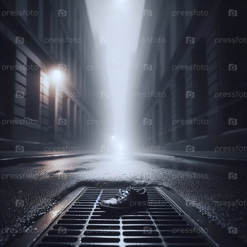 Широкий, атмосферный снимок одинокой обуви на пустой улице Ай создал изображение
