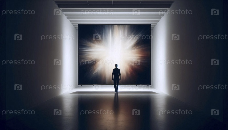 Широкая, минималистичная фотография в темной пустой галерее Ai generated image