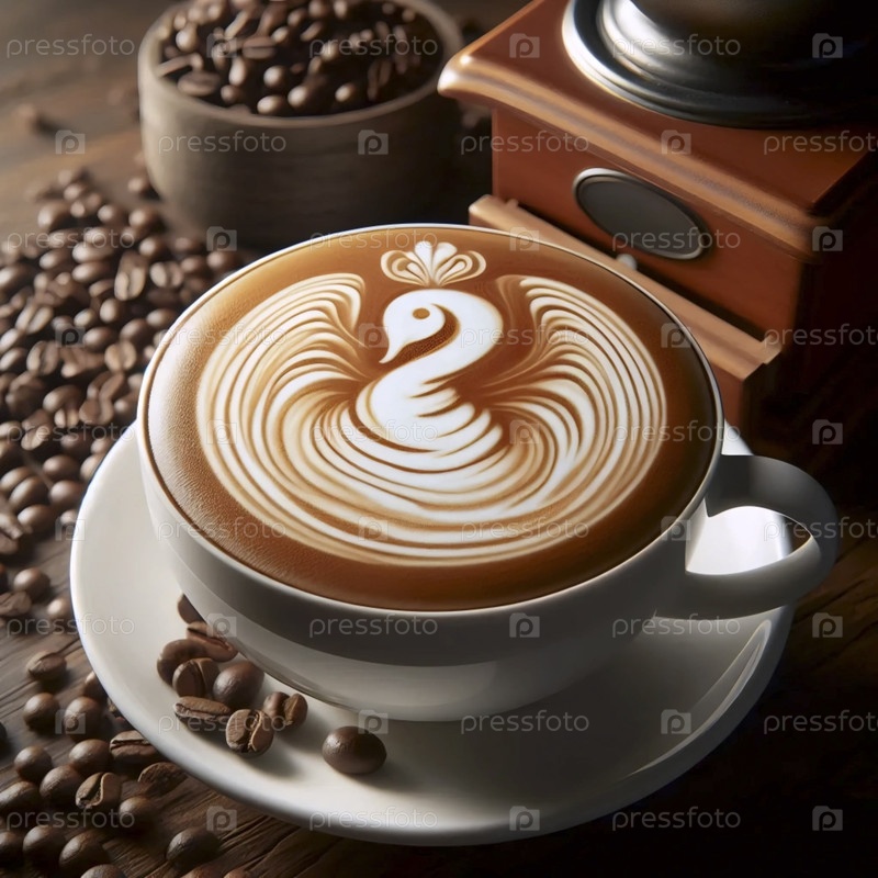 Специальный кофе латте со сложным искусством, Ai generated image