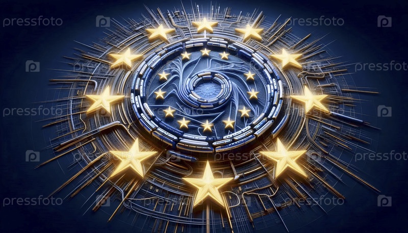 Флаг Европейского союза сделан из взаимосвязанных железнодорожных сетей, Ai generated image