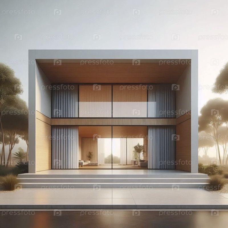 Нейтральный фотоотпечаток современного дома середины века, Ai generated image