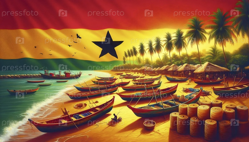 Гаанский флаг в яркой прибрежной рыбной жизни, Ai generated image