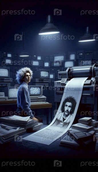 Компьютерный гений 1980-х годов с линейным принтером, Ай создал изображение