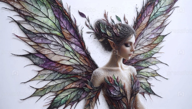 Фея с крыльями акварели солевой техники, Ai generated image