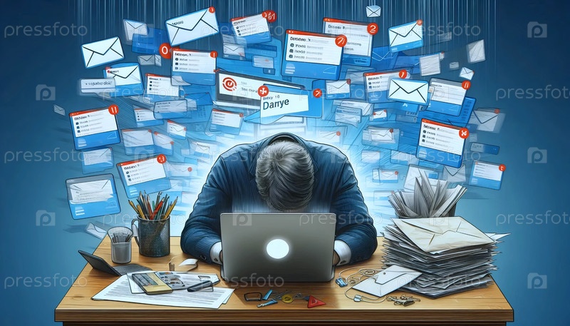 Переполненный почтовый ящик на экране ноутбука, Ai generated image