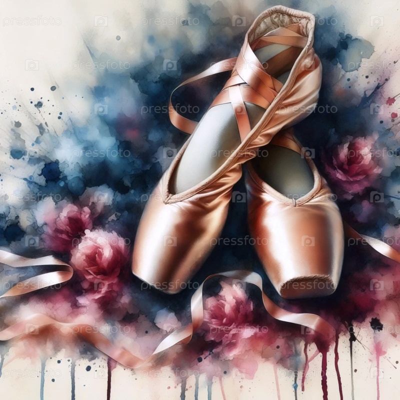 Водяные балетные туфли растворяются в вихре краски, Ai generated image