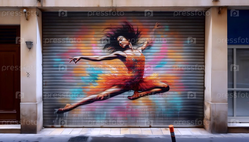 Граффити балерины на стене в промышленном районе, Ai generated image