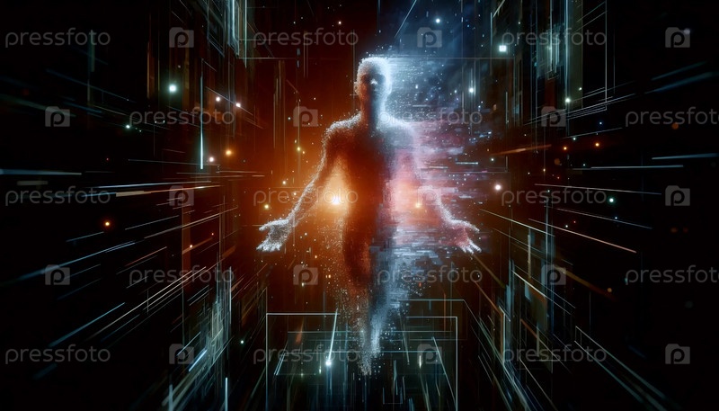 Цифровой ангел-проблемщик с пикселированными крыльями, Ai generated image