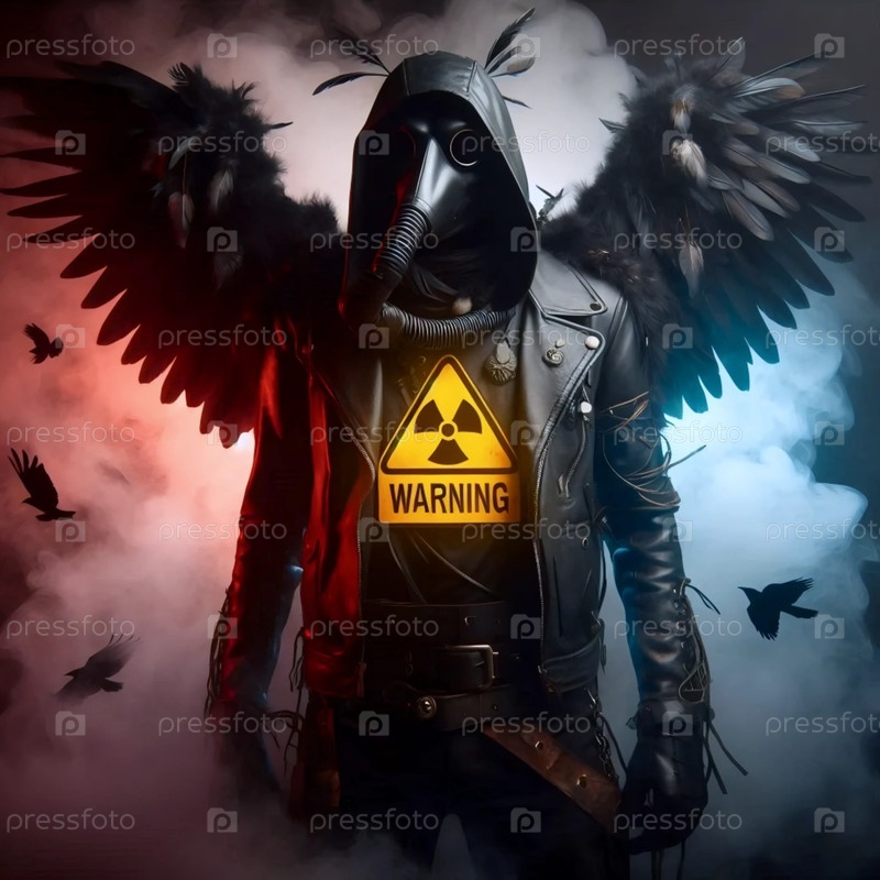 Постапокалиптический ангел с газовой маской и ореолом из колючей проволоки, Ai generated image