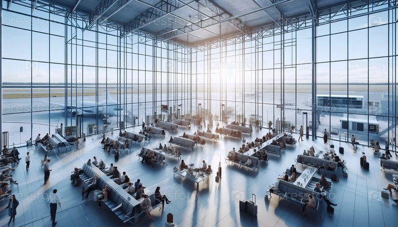 Терминал аэропорта с людьми, ожидающими рейса, Ai generated image