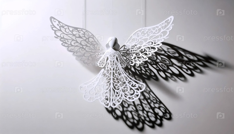 Силуэт ангела из вырезанной бумаги со светом, проходящим через него, Ai generated image