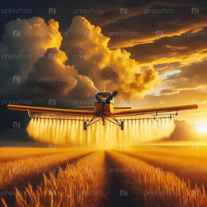 Самолетный порох будет летать низко над золотыми полями, Ai generated image