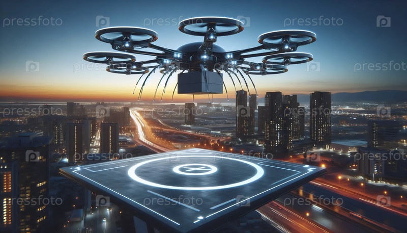 Самолет доставки беспилотного летательного аппарата, запускающийся с крышной площадки, Ai generated image